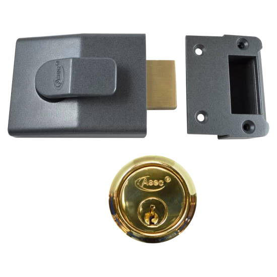 The Asec AS11 Deadbolt operated Nightlatch can be opened with a key from the outside and a lever from the inside.