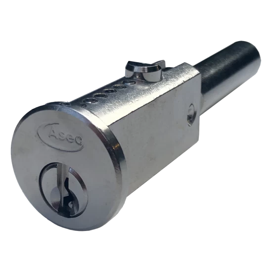 The Asec round faced bullet lock suits the most popular style of roller shutters; it is available keyed to differ or in keyed alike pairs and is supplied in a full colour box that is ideal for counter display. The lock housings (sold separately) are usually welded to either side of the frame and the tail of the bullet lock is inserted into a hole in the roller door preventing it from being opened.