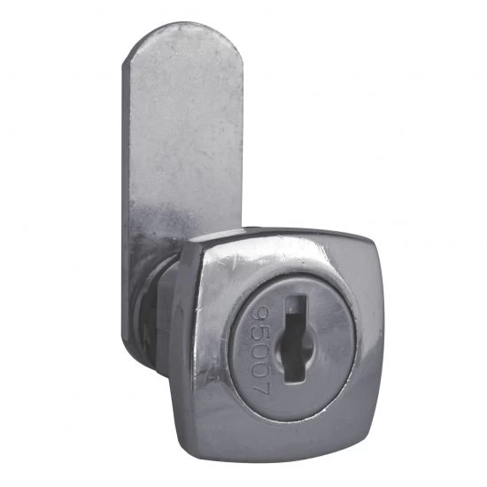 Easy to install squared faced snap fit cam locks designed to fit metal cupboards and cabinets. These cam locks are supplied complete with 2 keys and spring steel locking plate.