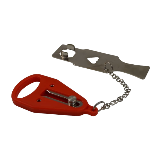 The MINDER Portable Door Lock is a rapid deployment portable lock where the end metal piece fits into the strike plate, and when closing the door, the red part of the lock secures in place, making it ideal for students, individuals staying in temporary accommodation or travelling abroad for added security. It has a steel core construction with stainless steel functioning parts providing ensured robust quality and peace of mind for the user. It is quick and easy to both install and remove and is supplied complete with a handy carry pouch for convenience.