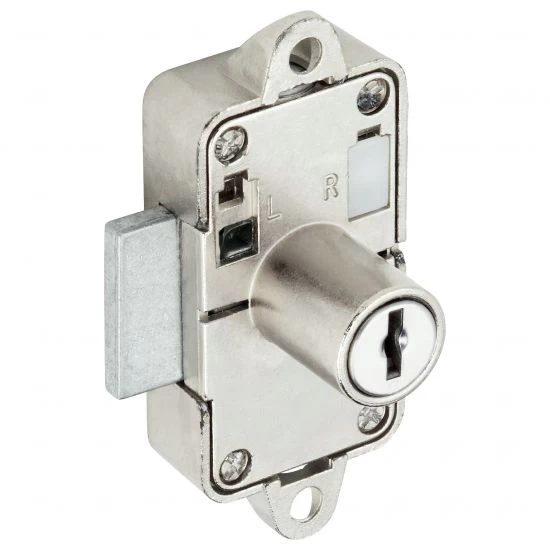RONIS 32900 Round Drawer Lock is supplied under the SM Master Key Series in a Bright Nickel Finish. It has 2 fixing holes for a secure fit, is suitable for use on drawers up to 19mm thick, is supplied with 2 keys and has a 9mm bolt throw. The key operates the cylinder 90ยบ clockwise to unlock and can be removed in both the locked and unlocked positions.
