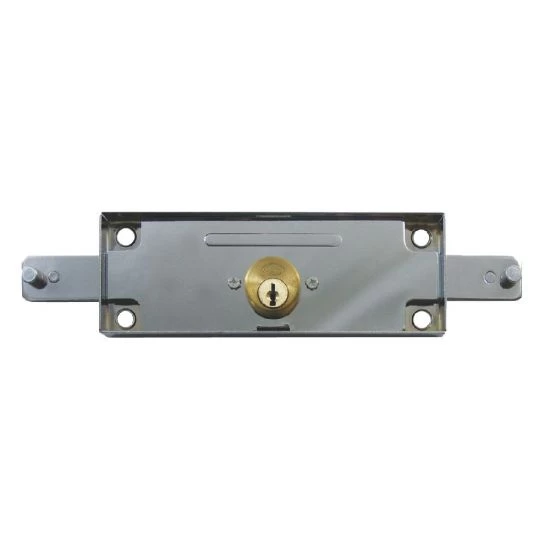 The Tessi 6410 roller shutter lock is usually installed in the centre of the door. Both side arms extend when operated, these are linked to the shutter’s locking bars, these lock the shutter into both sides of the frame for increased security. The lock case is installed on the inside of the door with the barrel protruding through the door to allow key access.